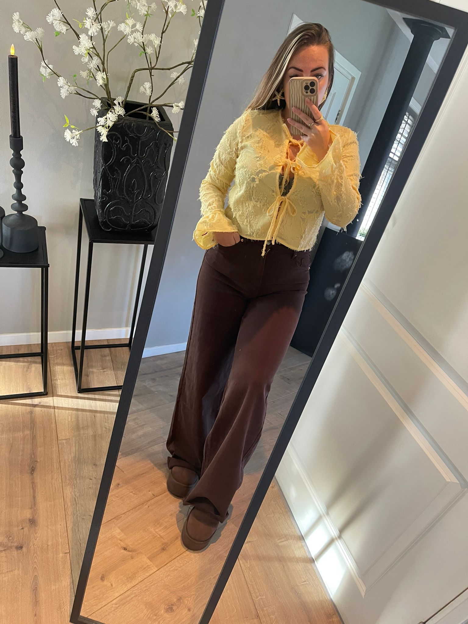 Voeg een vleugje lef toe aan je outfit met deze choco pantalon. De opvallende print geeft je look een stoere, maar ook vrouwelijke uitstraling. Dankzij de aansluitende pasvorm accentueert de top mooi je figuur en is hij perfect te combineren .