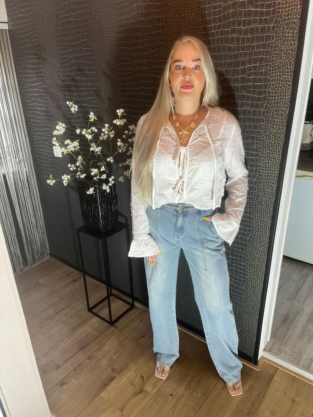 Maak kennis met dé jeans die je look direct een upgrade geeft. Deze wide leg jeans met opvallende dubbele naad langs de pijpen is helemaal on-trend en combineert moeiteloos stoer met stijlvol. De high-waist fit zorgt voor een mooie pasvorm, terwijl de wijde pijpen en strikdetail onderaan voor een speelse twist zorgen.